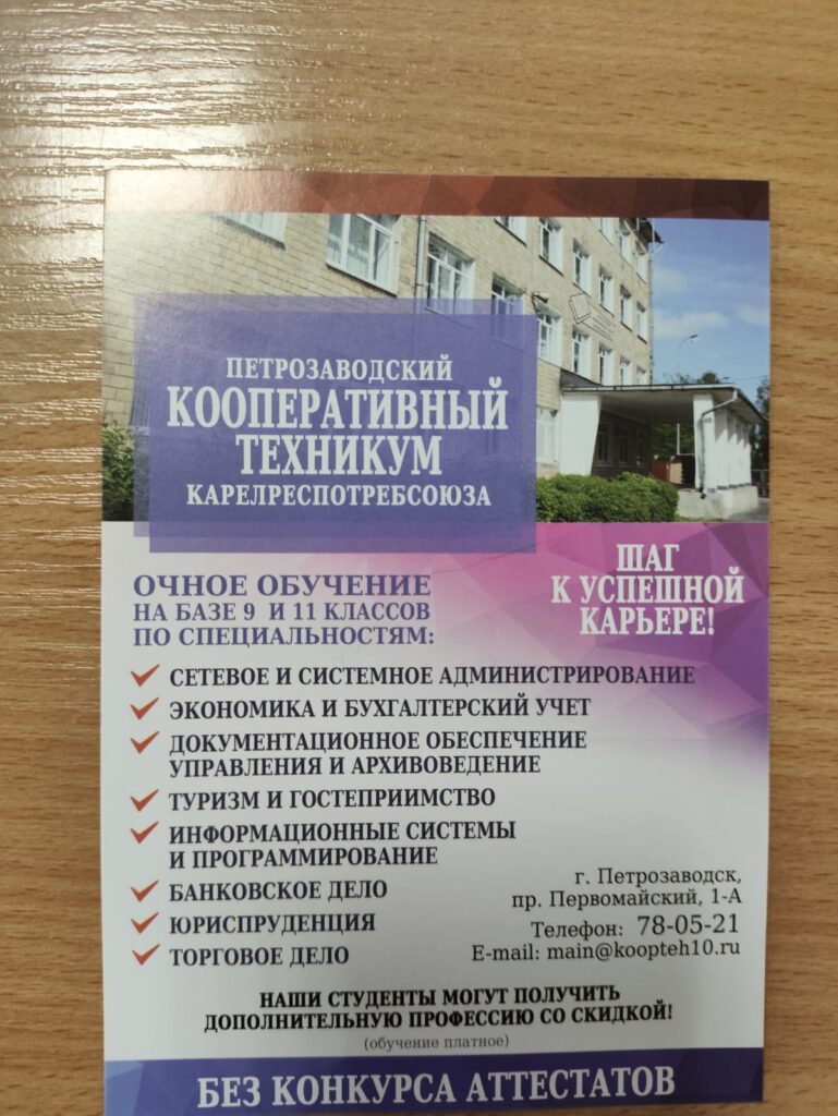 Профориентация Автор: Administrator · 13.10.2025 9б класс экскурсия в кооперативный техникум. Познакомились с профессиями, с условиями поступления в техникум. Share