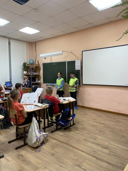 Активисты провели «минутки безопасности» для учеников 1‑х и 4‑х классов: 1 «Б», 1 «Г», 1 «Д», 2 «Г», 4 «А» и 4 «Б».