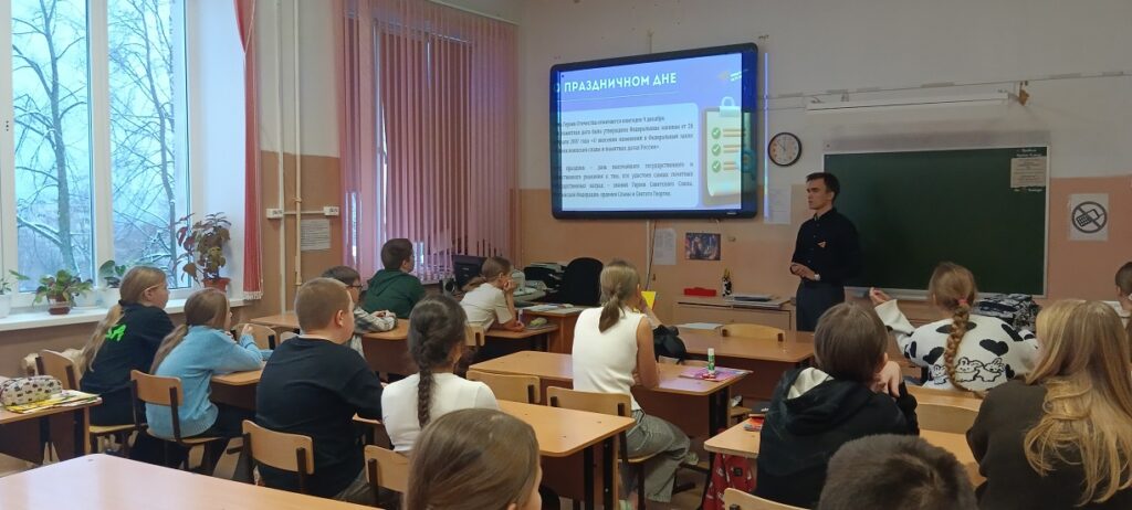 Сегодня в школе №33 прошли тематические занятия для учеников 8Б, 8В и 5А классов, посвящённые двум важнейшим датам декабря: Дню Героев Отечества и Дню Конституции России.